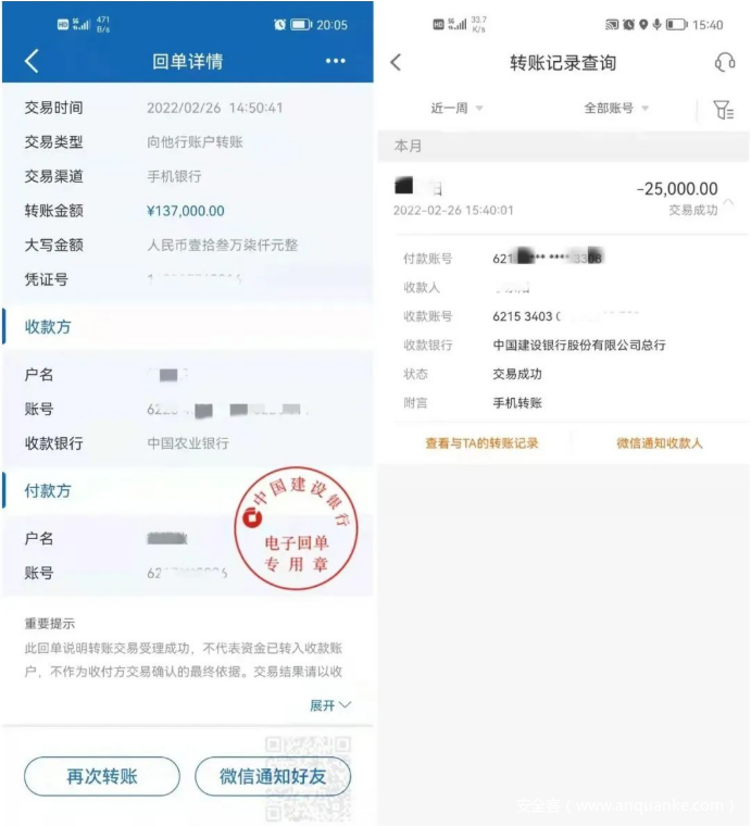 - 千万不要向任何陌生账户转账!