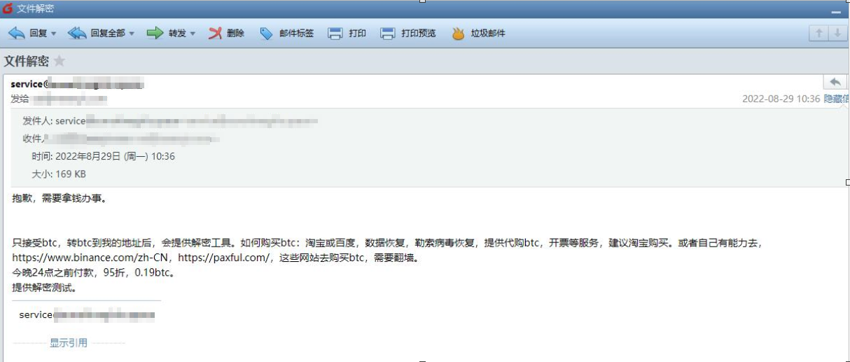 此外,通过与攻击者的沟通邮件可以肯定对方也是中文使用者,沟通全程使用中文进行对话,且语句非常自然并非“机翻”。