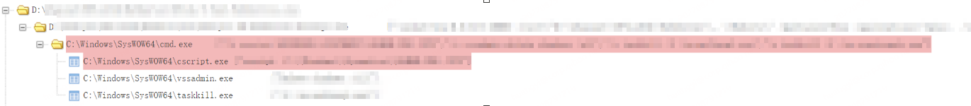 此次事件中,攻击者是针对暴露在互联网上的某CRM系统发起攻击,利用漏洞向目标机器上传PHP WebShell,并使用WebShell加密文件。进程树如下所示: