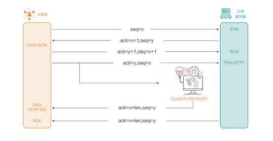 在完整的攻击实例中,Quantum(量子)注入攻击伪造的HTTP重定向报文会先于正常响应报文到达用户上网终端。