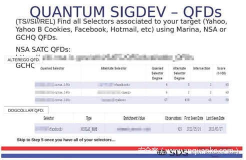 第二阶段,目标定位完成后,QUANTUM量子攻击操作会进入被NSA称之为“QUANTUM SIGDEV”(量子监控)的阶段,该阶段的主要任务是全面监控攻击目标的互联网账号等相关网络通信内容和其它网络活动。