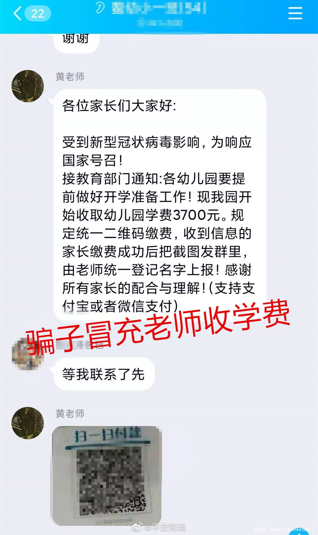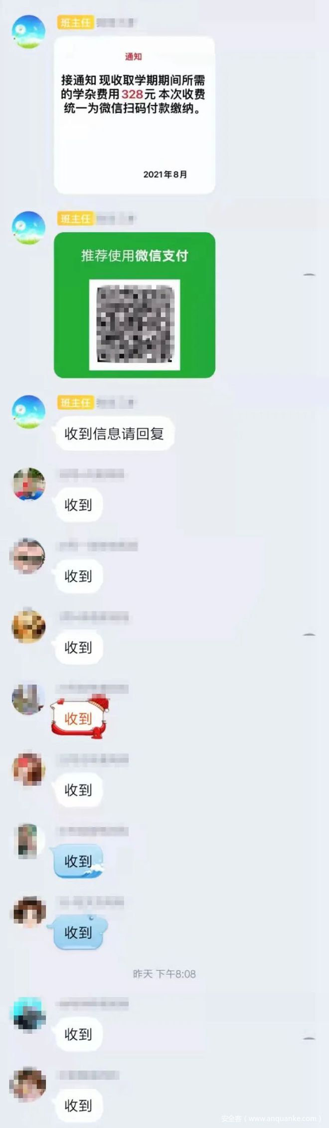 骗子混入班级群,冒充老师以预收“学费”、“学杂费”“书本费”等各种费用为由,诱骗家长扫描二维码转账,进行诈骗的情况偶有发生。今天就给大家看看这骗子变的“戏法”。