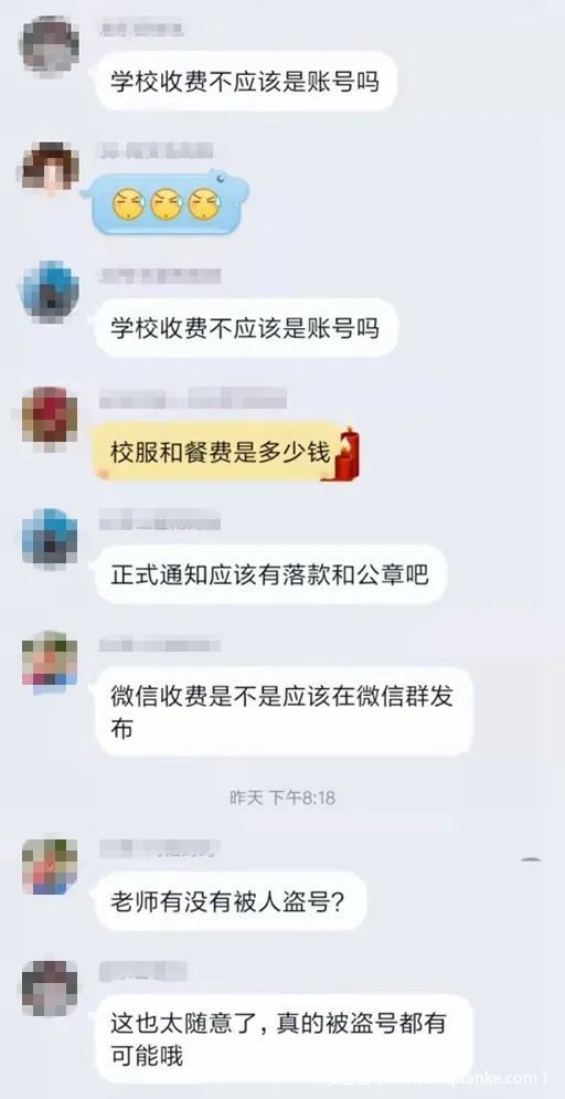 “Q群都新建好几天,不少家长陆续入群,大家没起什么疑心,直到有一天晚8时,班主任突然在群中发了一份缴费通知。”陈女士说道。