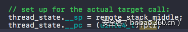 利用coreauthd的task port我们可以利用mach_vm_* API任意的修改coreauthd的内存以及寄存器,所以我们需要先开辟一段内存作为stack,然后将sp指向这段内存,再将pc指向我们想要执行的函数地址就可以让目标进程执行任意的函数了,具体实现在call_remote()中: