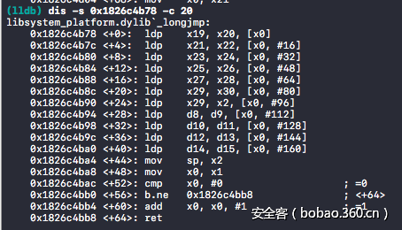 因此我们可以利用JOP跳转到_longjmp函数作为来进行stack pivot,从而控制stack: