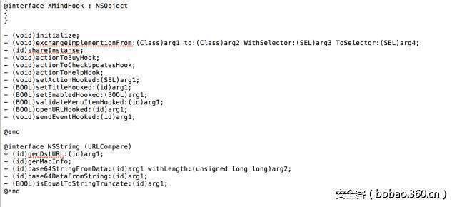 进程注入后,使用Method Swizzling挂钩MenuItem、Button等按钮,使其失效或重定向跳转到其他网站,屏蔽注册、激活检查更新功能。难怪启动应用后发现激活按钮失效,无法进行版本更新,购买激活产品却跳转到另一个网站。