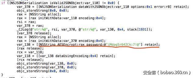 结合上述过程,了解到加密算法的第一个参数为kCCEncrypt,第二个为kCCAlgorithmAES128,第三个为加密的填充模式kCCOptionECBMode。 依据此我们写出的AES解密方法应该为: