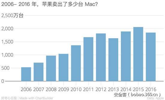 过去六年间,Mac销量越来越高,也意味着苹果用户越来越多。而用户一多,生态圈内的软件产出势必增长, 同时也会出现更多恶意软件浑水摸鱼