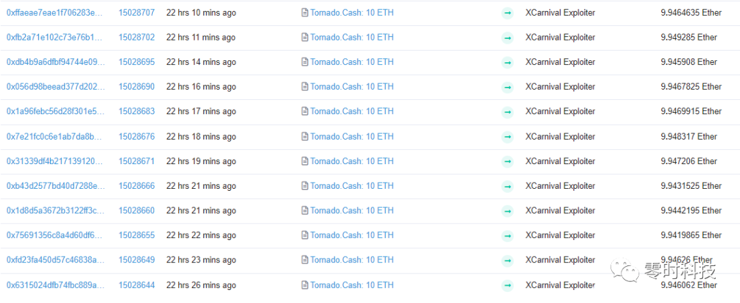 1)通过混币平台 Tornado.Cash 获取初始约资金共 120 枚 ETH。
