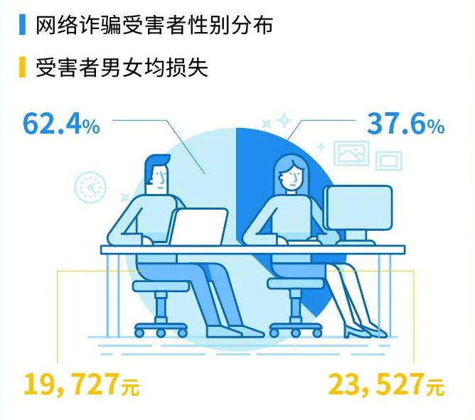 从被骗网民的年龄段及人均损失来看,2021年全年,90后与80后为诈骗高发人群,而00后也“异军突起”占据被骗人群的一大部分。