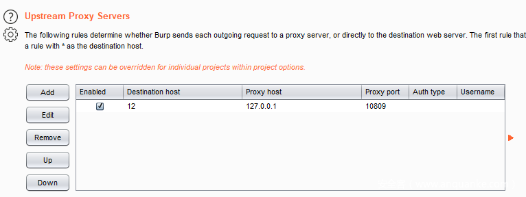 •如果需要再挂一层代理改变出网ip,只需要在Burp的User options中的Upstream Proxy Servers设置上层代理即可