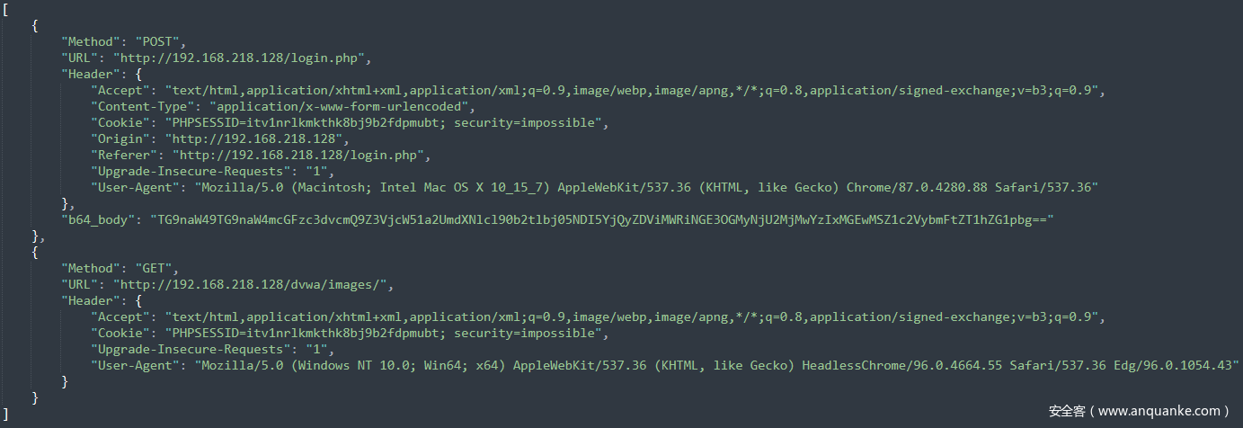 2.上述的使用容易出现POST请求不会被检测到的情况,所以可以使用Json格式进行输出,然后通过脚本实现对GET请求与POST请求的分离,使用多命令执行来实现精准匹配。