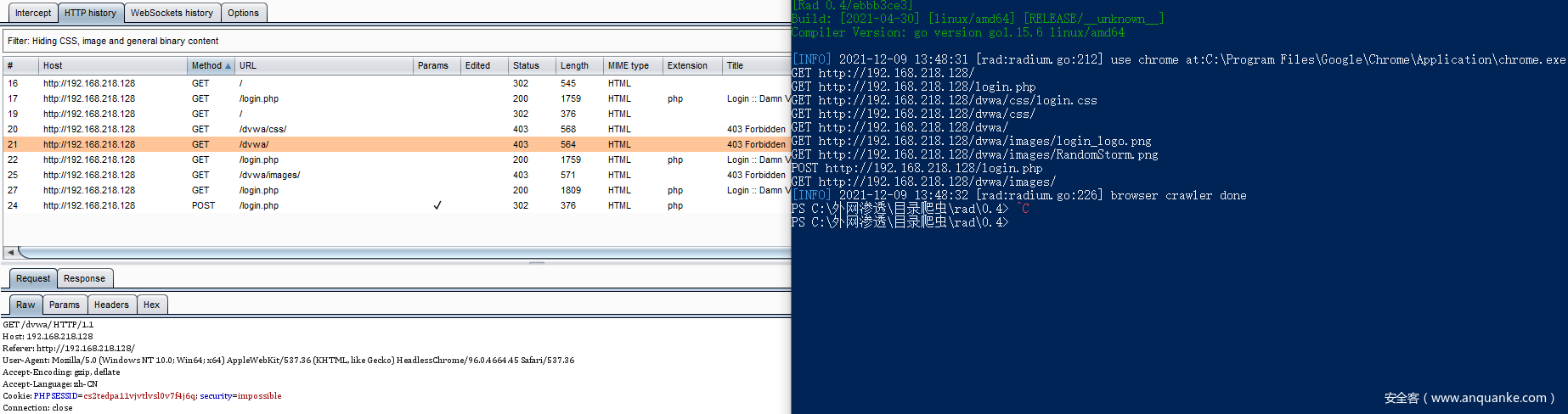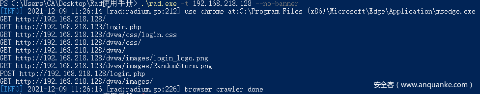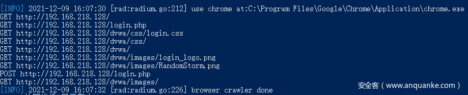 rad,全名 Radium,名字来源于放射性元素——镭, 从一个URL开始,辐射到一整个站点空间。他是从企业版Xray中提取出的一款专为安全扫描而生的浏览器爬虫。由Golang写成,具有如下特点: