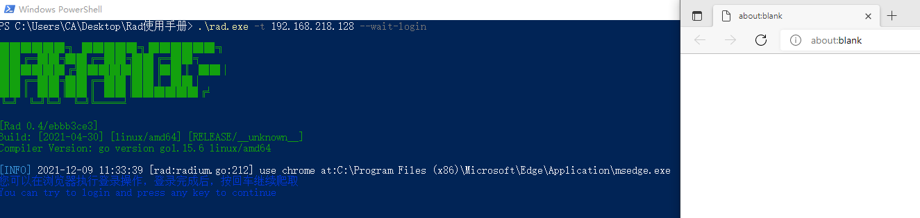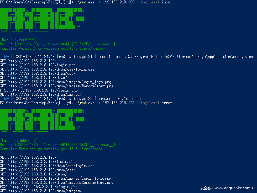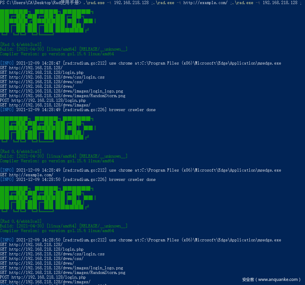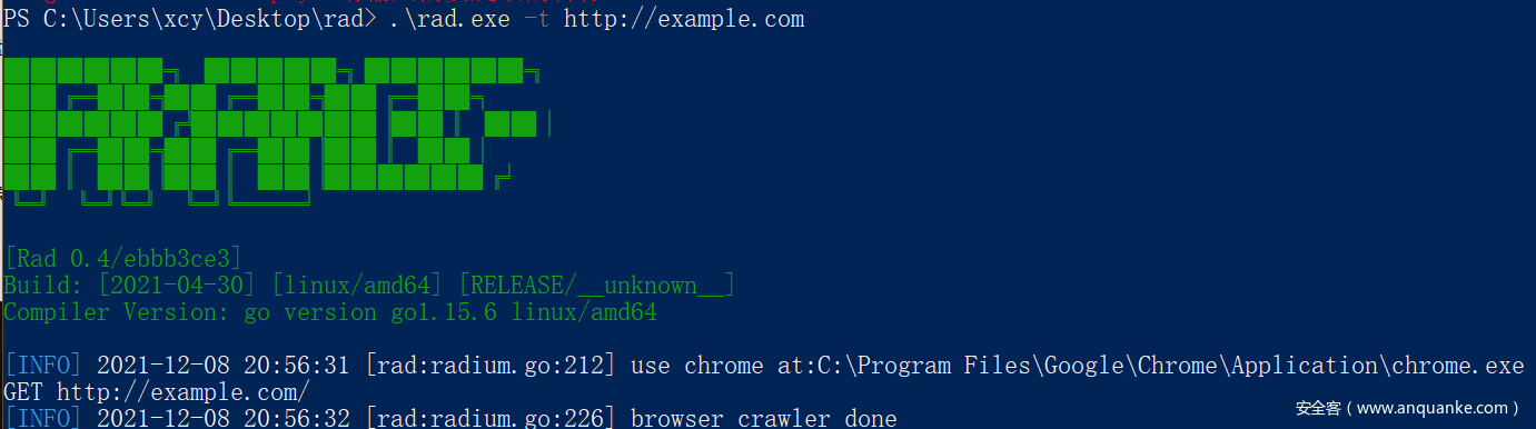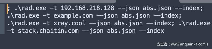 Rad是没有图形化界面的,所以需要通过Powershell,cmd,shell等通过命令行调用。配置文件需要随意制定一个扫描目标后生成。