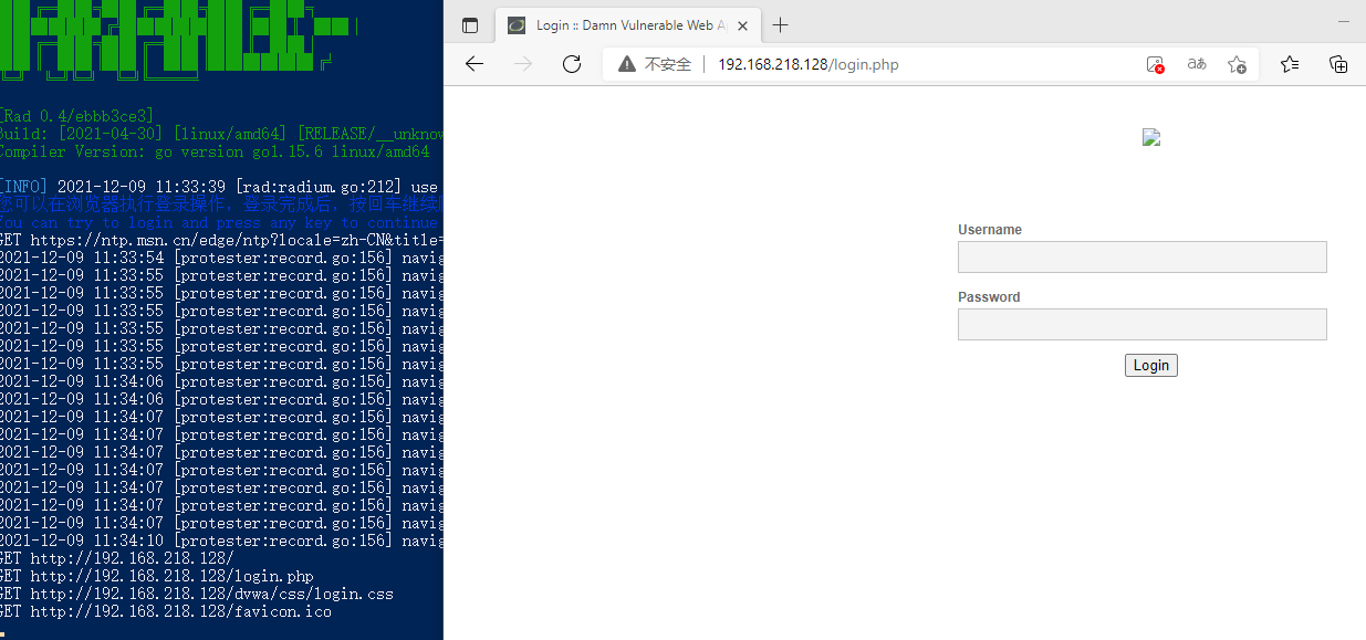 –运行rad:rad -t http://example.com -http-proxy 127.0.0.1:7777