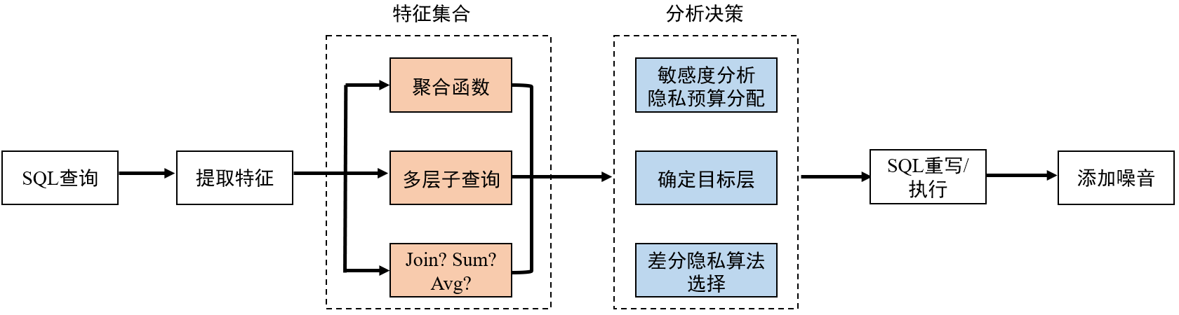 - · 根据SQL查询包含的聚合函数类型,自适应地为查询分配隐私预算,降低隐私预算的消耗;