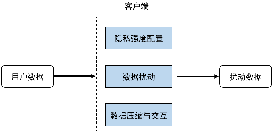 1)客户端:内置LDP-SDK,包含个性化的扰动机制,用以接受用户个性化的隐私保护需求设置,并据此对用户数据进行扰动处理,从而为用户提供差分隐私保护;