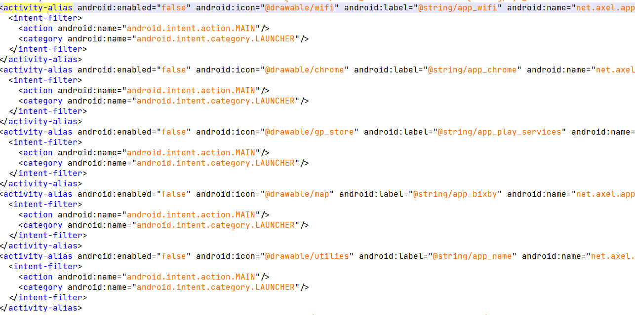 通过使用“activity-alias”设置应用Activity的别名,提供快捷入口和更改应用图标: