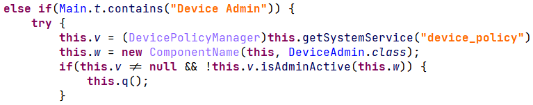 恶意程序,通过激活设备管理器,防止用户正常卸载。