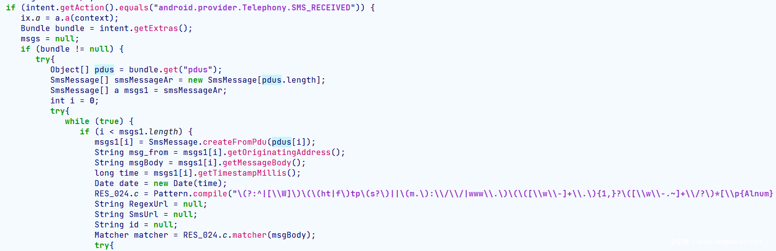 恶意程序通过Google的FCM(Firebase Cloud Messaging)和短信执行远程控制指令。