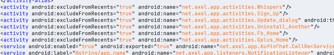 恶意程序通过设置“excludeFromRecents=”true””属性,使后台运行程序对用户不可见,防止用户主动结束杀后台。