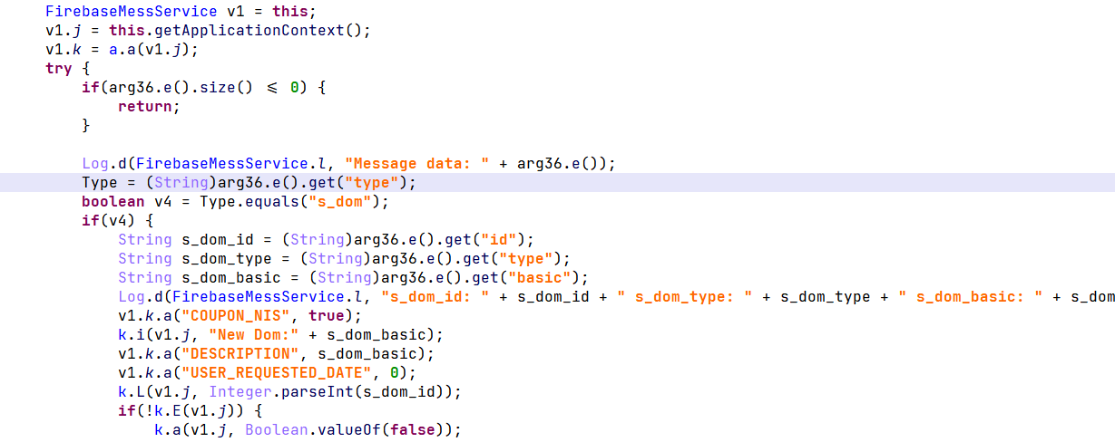 通过FCM消息传递解析对应参数(type)获取远控指令: