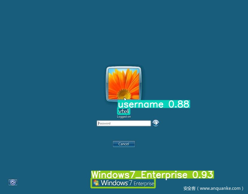 在得到用户名位置后,根据经验判断,将预测框的位置在图片宽度基础上误差设置为0-5个像素值,在高度基础上误差设置为0-3个像素值,然后将其裁剪下来,利用我们已有的ocr模型进行识别,得到最终的操作系统版本类别和用户名信息。同时,支持多个用户名识别。