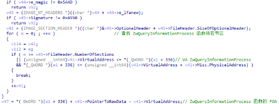 共实现了两种 ZwQueryInformationProcess 函数以供不同进程环境的调用。