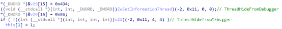 2.1>使用 ZwSetInformationThread 函数进行反调试。