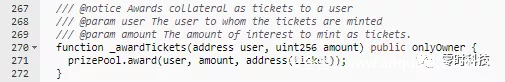 随后攻击者通过MultipleWinners合约中可铸造Ticket Titano代币的_awardTickets方法,