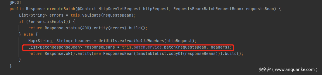 分析Jira Mobile 插件,在com.atlassian.jira.plugin.mobile.rest.v1_0.BatchResource中存在barch API接口,阅读代码,该API应该是用于接收多个请求并在服务端执行。