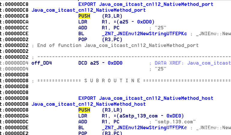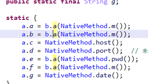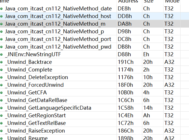 JNI作为与本地数据传递的桥梁,通过其可以实现Java代码里调用C、C++等语言的代码,如下为加载到本地层的关键函数信息