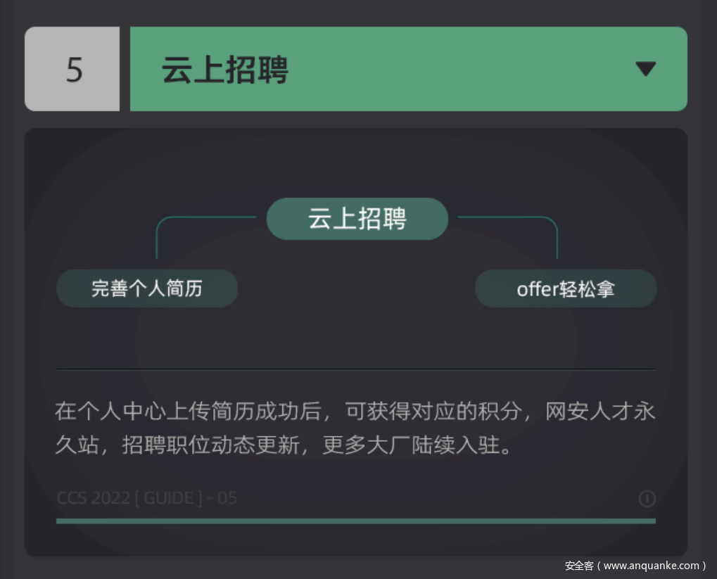 5.云上招聘:在个人中心上传简历成功后,可获得对应的积分,网安人才永久站,招聘职位动态更新,更多大厂陆续入驻。