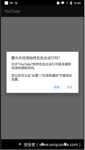 在安装应用后,app还提示用户允许应用始终在后台运行。