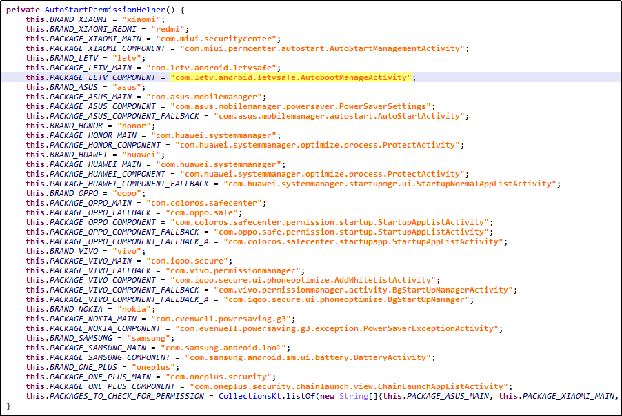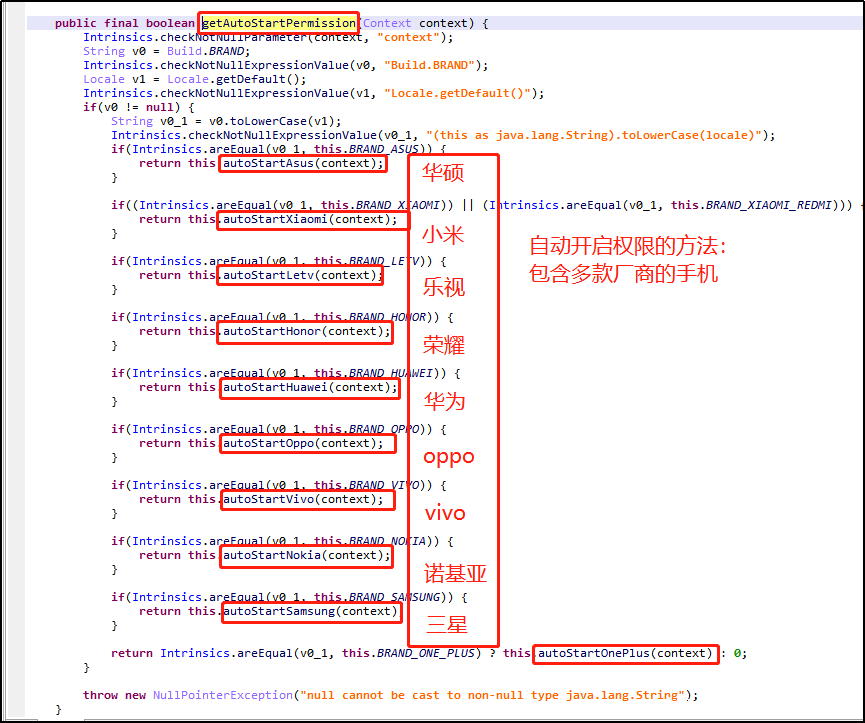 可以从静态分析中看出,这个提权的方法适配了国内外多款手机厂商,其中包含华硕、小米、乐视、荣耀、华为、oppo、vivo、诺基亚和三星手机。