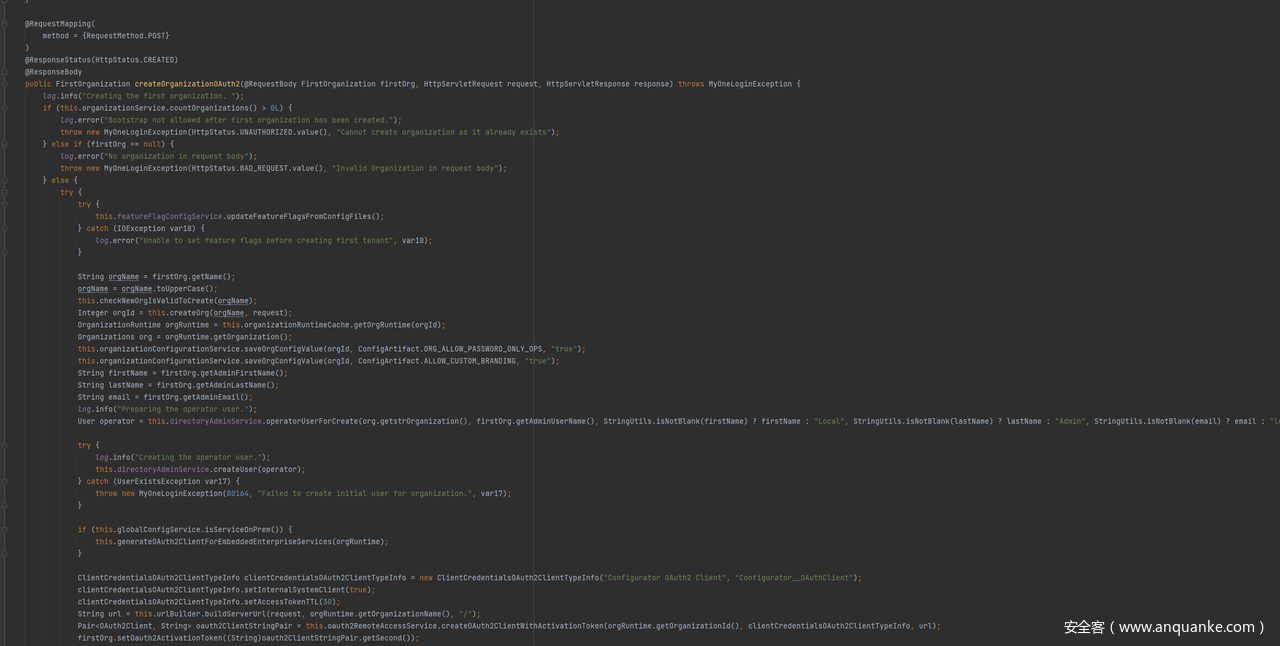 在VMware Workspace ONE Access安装过程中,会调用com.vmware.horizon.rest.controller.system.BootstrapController类进行初始化。