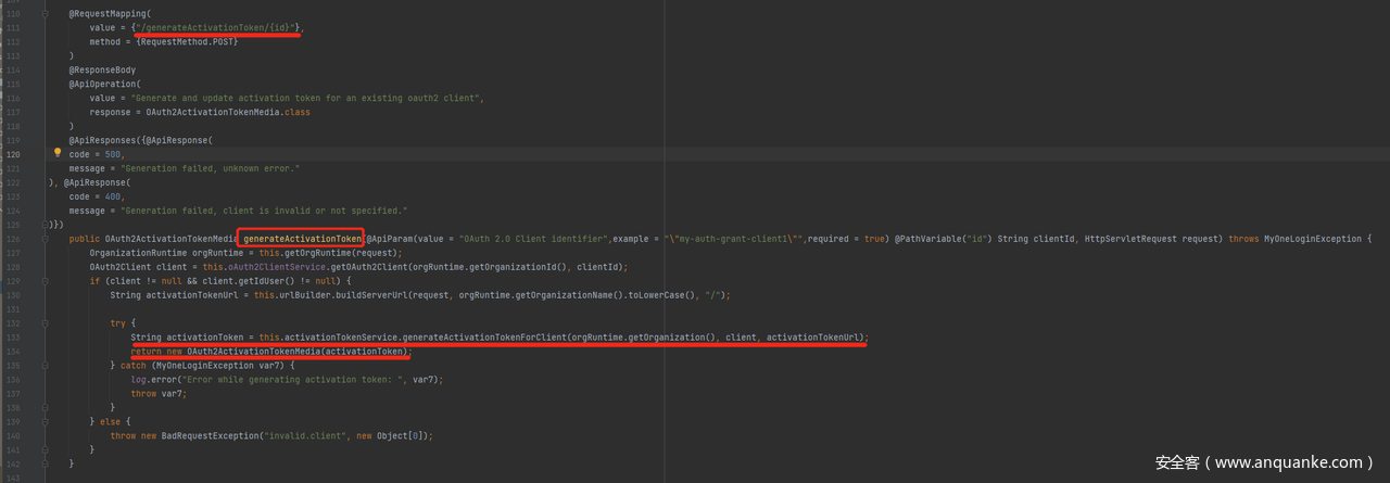 在generateActivationToken方法中将为oauth2客户端生成激活码activationToken