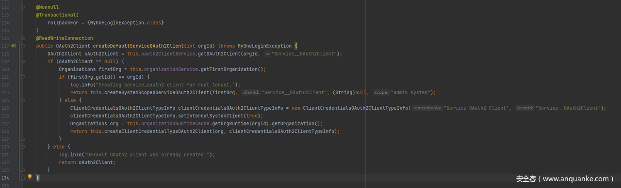 本质上会导致com.vmware.horizon.rest.controller.oauth2.OAuth2TokenResourceController#createTenant调用createDefaultServiceOAuth2Client函数,从而创建系统范围内的oauth2 客户端。