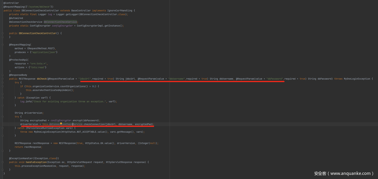 代码定位到com.vmware.horizon.rest.controller.system.DBConnectionCheckController.class