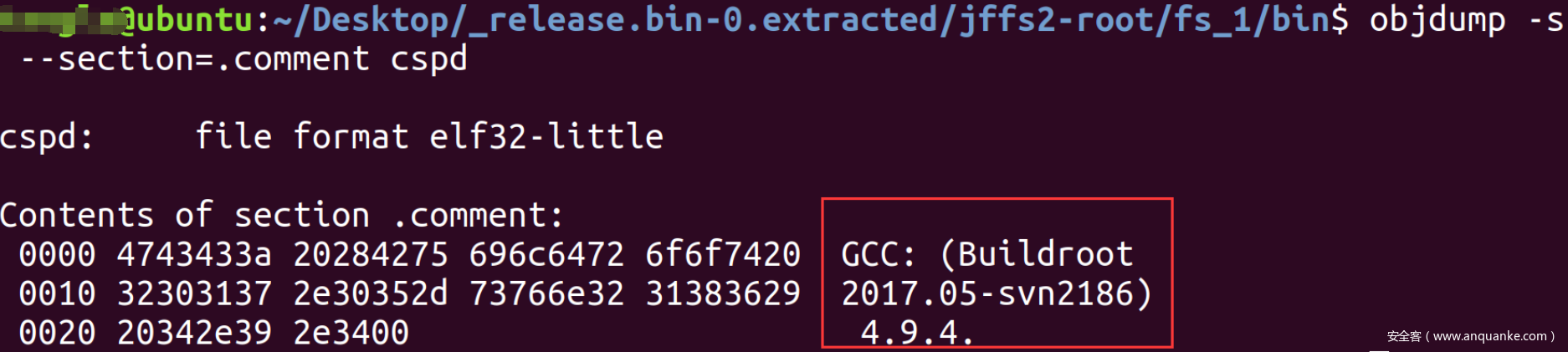 查看固件中程序信息,发现程序是使用buildroot编译,所以尝试使用Buidroot 2017.05编译一个带有telnetd的busybox移植到设备。