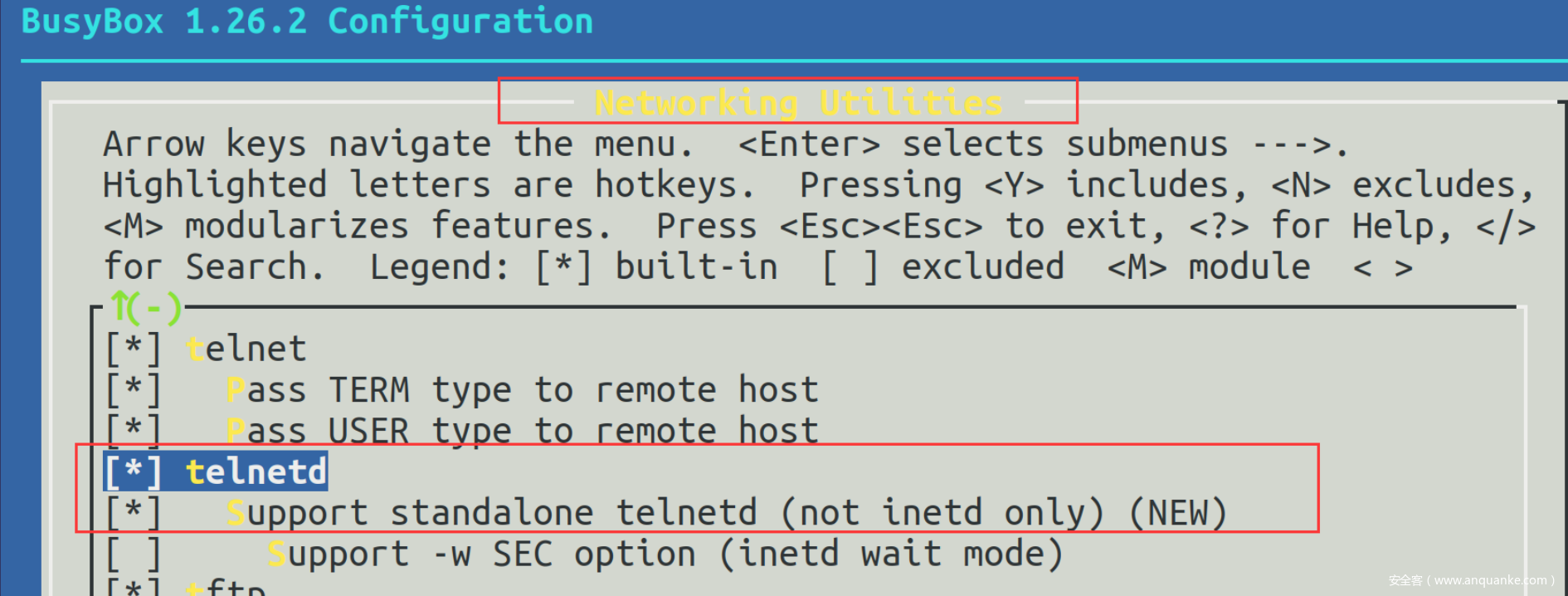 接着设置busybox相关选项,添加telnetd