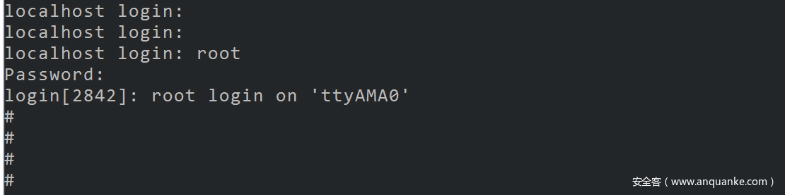 找到关闭console的代码,直接patch掉。开启console后想要登录进linux shell还需要知道用户名、密码,可以考虑直接将/etc/passwd文件中root用户密码字段置空,后面登录时直接输入用户名root即可登录。