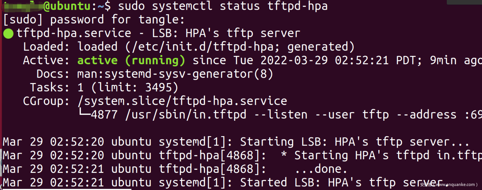 检查tftpd-hpa服务是否正在运行