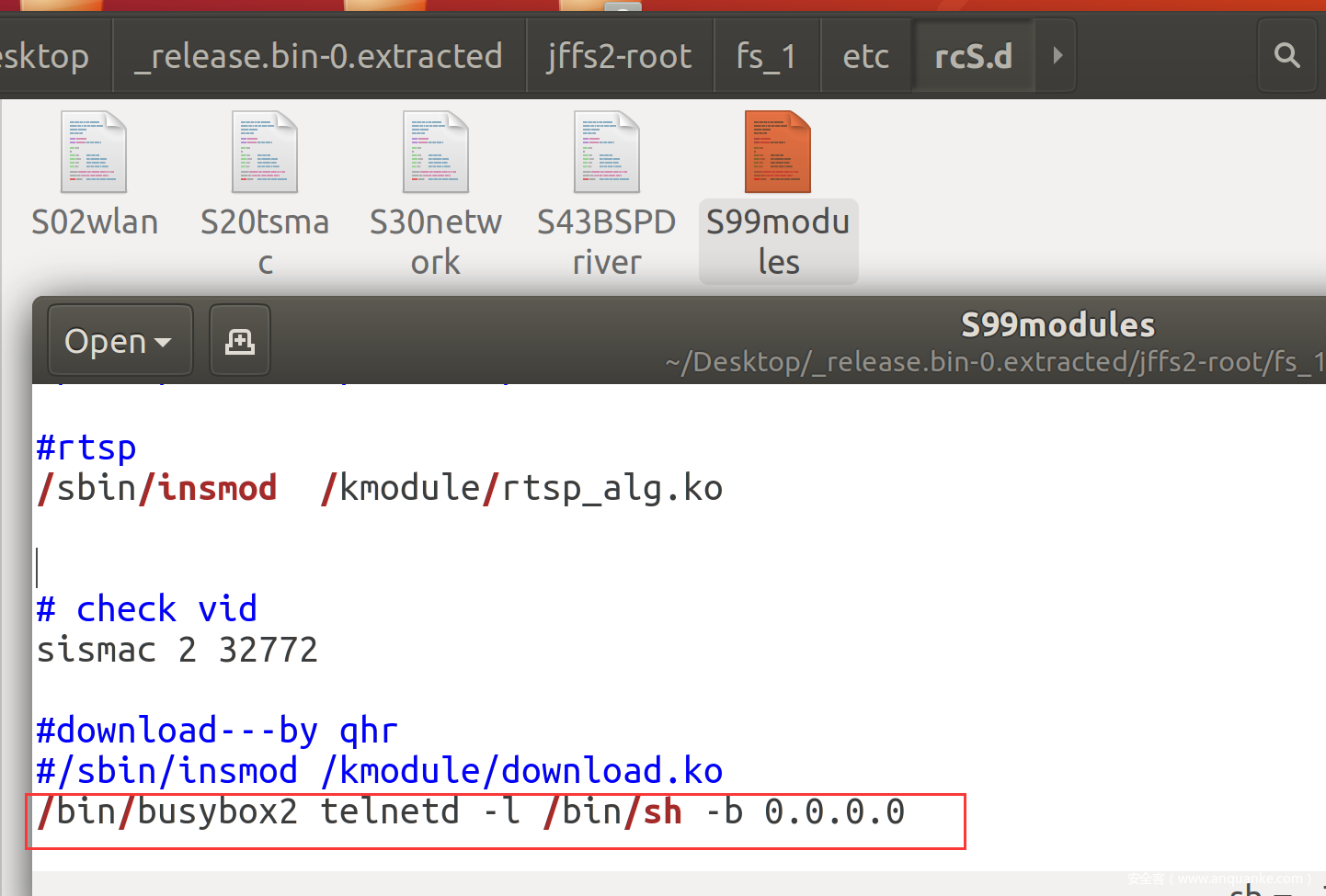 在路由器文件系统自启动目录/etc/rcS.d下找个文件,加入busybox2 telnetd的启动命令