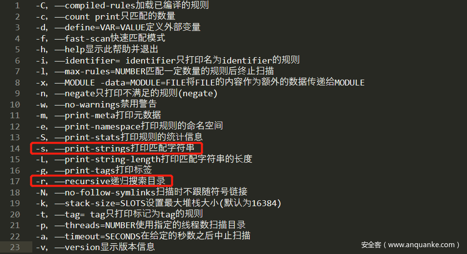 2.Yara检测程序运行中使用的参数。