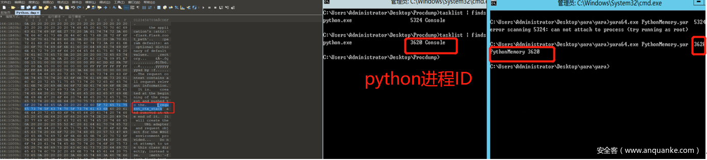 6.利用python flask内存马检测规则扫描出python.exe进程中被注入内存马。