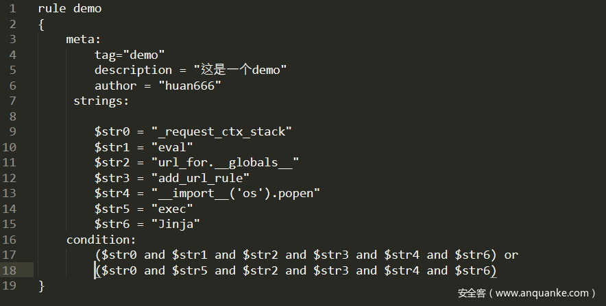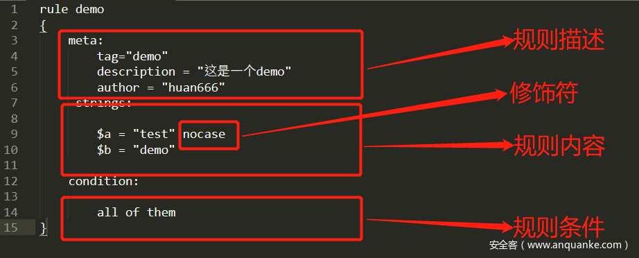 4.下面是一条Yara规则的demo。