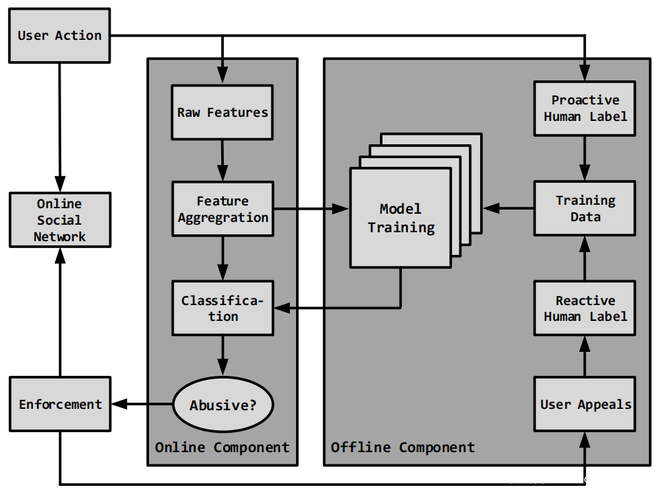 OSN 面临的一个核心挑战是如何以可扩展和精确的方式识别和修复滥用帐户。需要能够对数十亿用户和数百亿日常操作进行操作的可扩展性方法,以检测数十种不同的滥用类型。优先考虑精度的系统是必要的,因为滥用帐户相对较少,因此精度下降会导致 OSN 对大量良性用户采取错误行动。