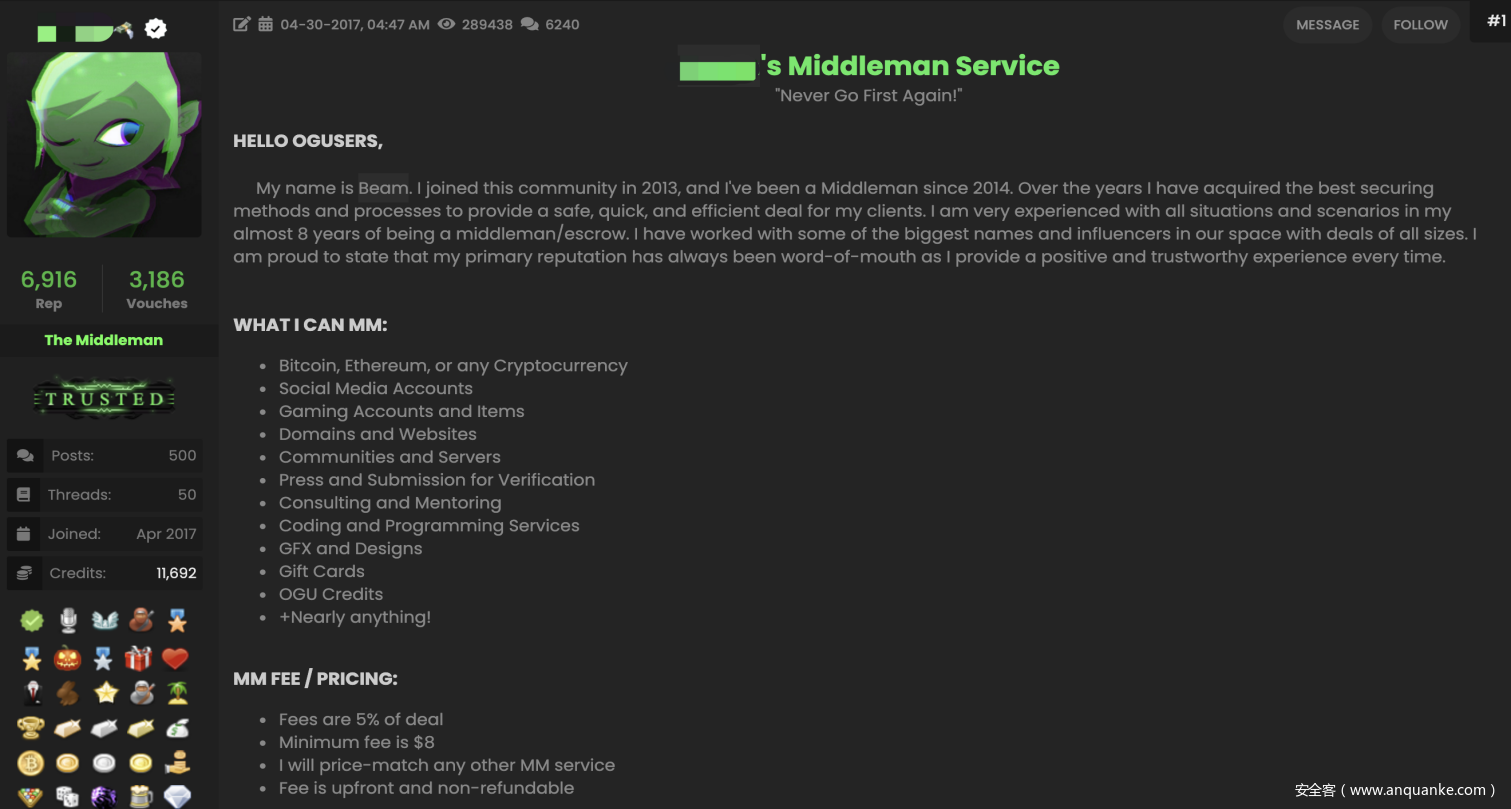 3.以售卖信息的地下市场为途径:使用在地下市场上出售的用户信息获得访问权限,黑客通过著名论坛OGuser购买到关于受害者目标用户身份的访问权限后尝试登录受害者的相关网站。