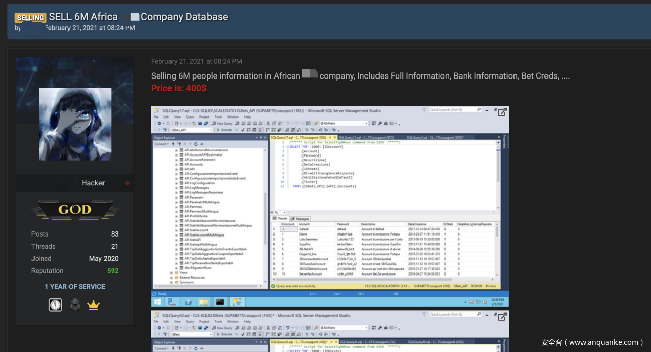 图2- RaidfForums上卖家出售数据库信息的帖子